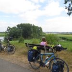 Yep, vertrekken op vrijdag de 13de, is dat vragen om ongelukken? Wij zijn gelukkig niet bijgelovig en toevallig komt het zo uit. Vrijdag 13 juli 2018 vertrekken we voor onze fietstocht naar en van Berlijn. We fietsen tot aan Berlijn de R1 en zijn natuurlijk zo eigenwijs om direct een eigen route te kiezen. Eigenlijk moeten we in Nederland de LF4 fietsen, maar die in tot Arnhem al vaker door ons gefietst, de route die we nu kozen ook hoor, en die gaat over smalle paden in de bossen. Met volle bepakking is dat niet altijd een pretje. We kiezen dus ons alternatief om tot Arnhem de Rijn te volgen via de zuid-oever.